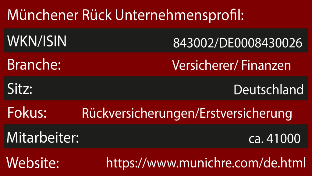 Die Münchner Rückversicherungs-Gesellschaft AG – kurz Münchener Rück oder auch Munich Re – ist einer der weltweit größten Rückversicherer. Das Unternehmen wurde bereits 1880 gegründet und ist somit eine wahre Institution.