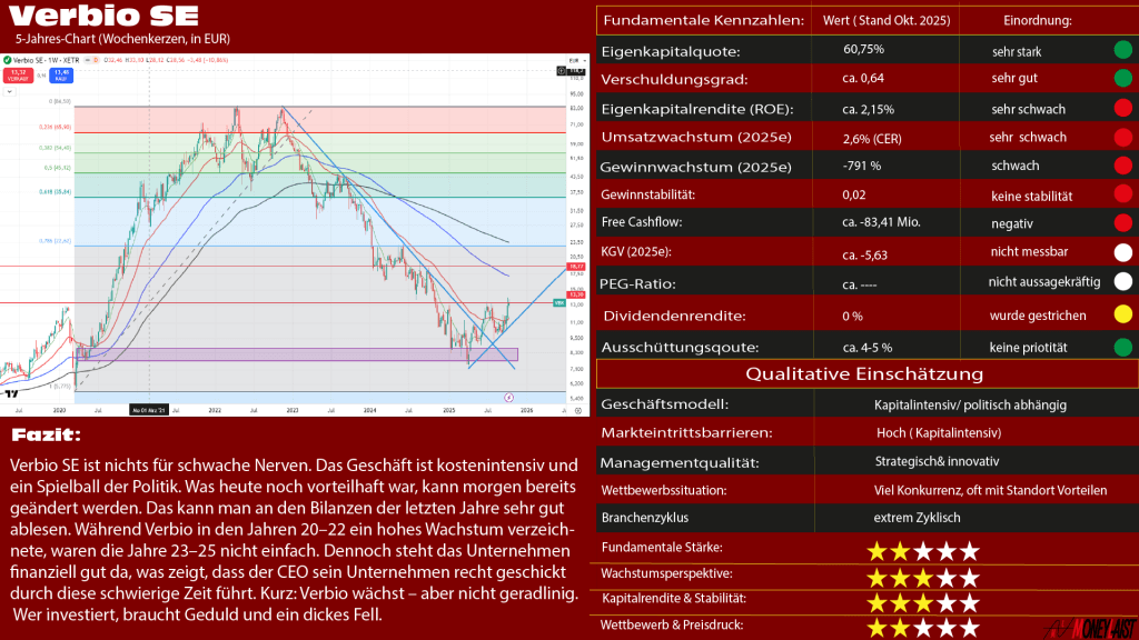 Als strategisches Investment scheint die Aktie allerdings gerade sehr interessant zu sein. Sollte sich die Dekarbonisierung Europas fortsetzen und wieder Platz für mehr Vielfalt in den erneuerbaren Energien akzeptiert werden, könnte sich das für Verbio-Aktionäre wirklich auszahlen.